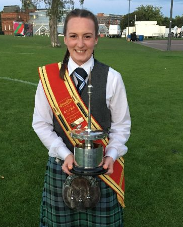 Sie spielt seit 13 Jahren bei Inveraray & District Pibe Band und hat sich von Novice Juvenille bis zu Grade 1 entwickelt.